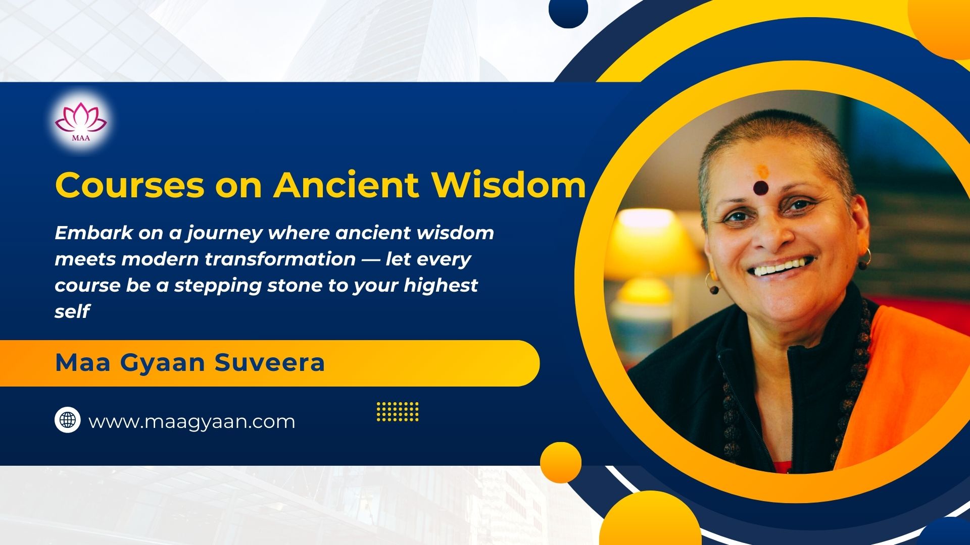 Courses on Ancient Wisdoms are available. The recorded courses are available on below topics, taught by Maa Gyaan Suveera